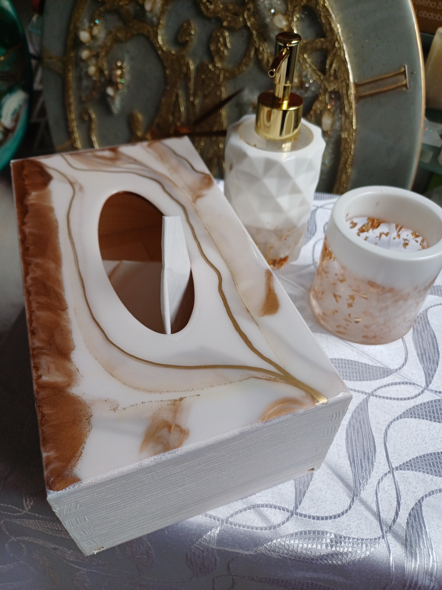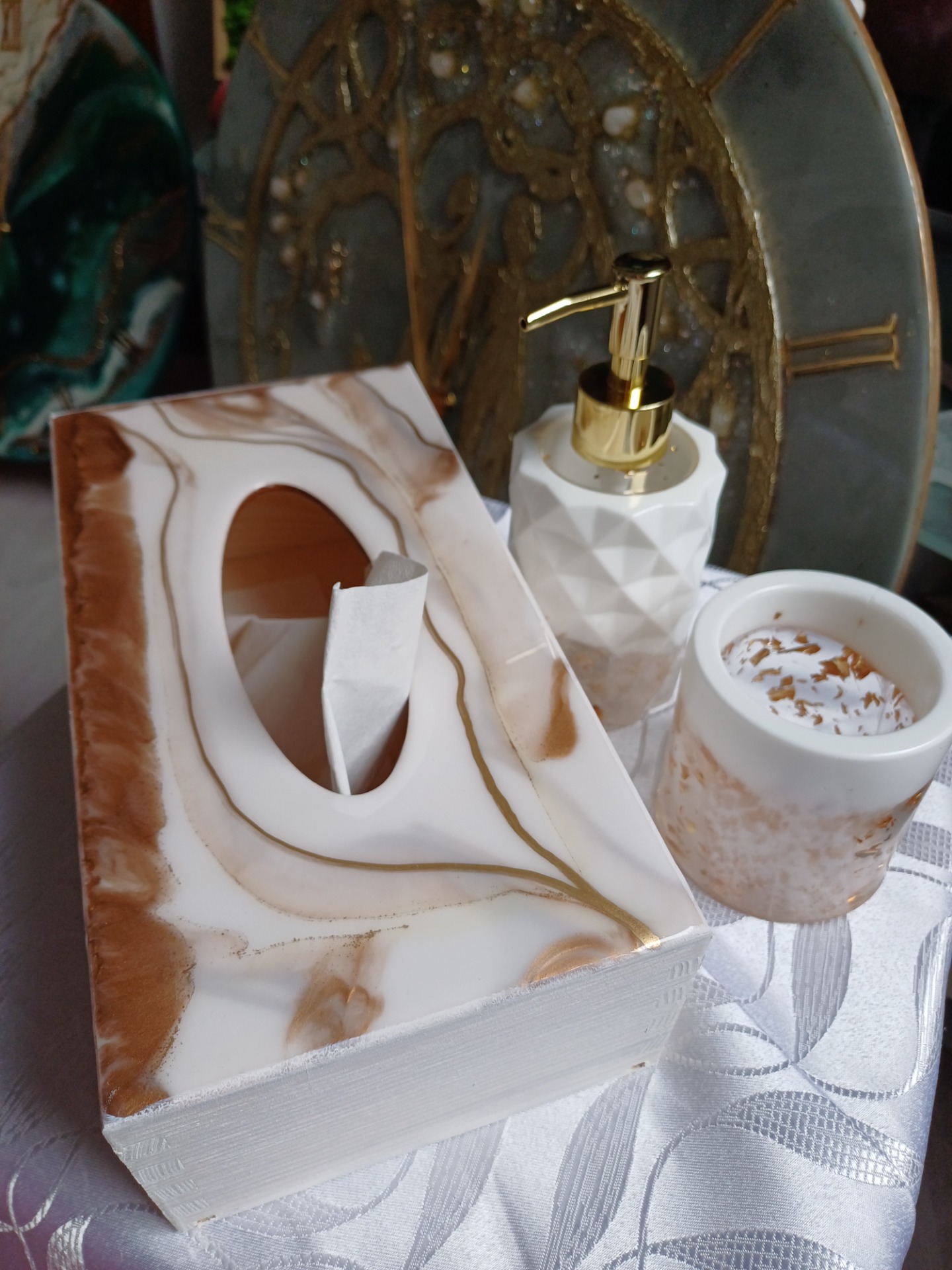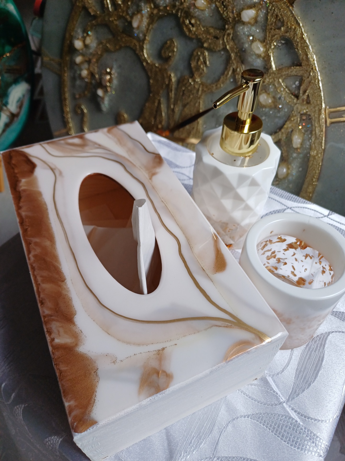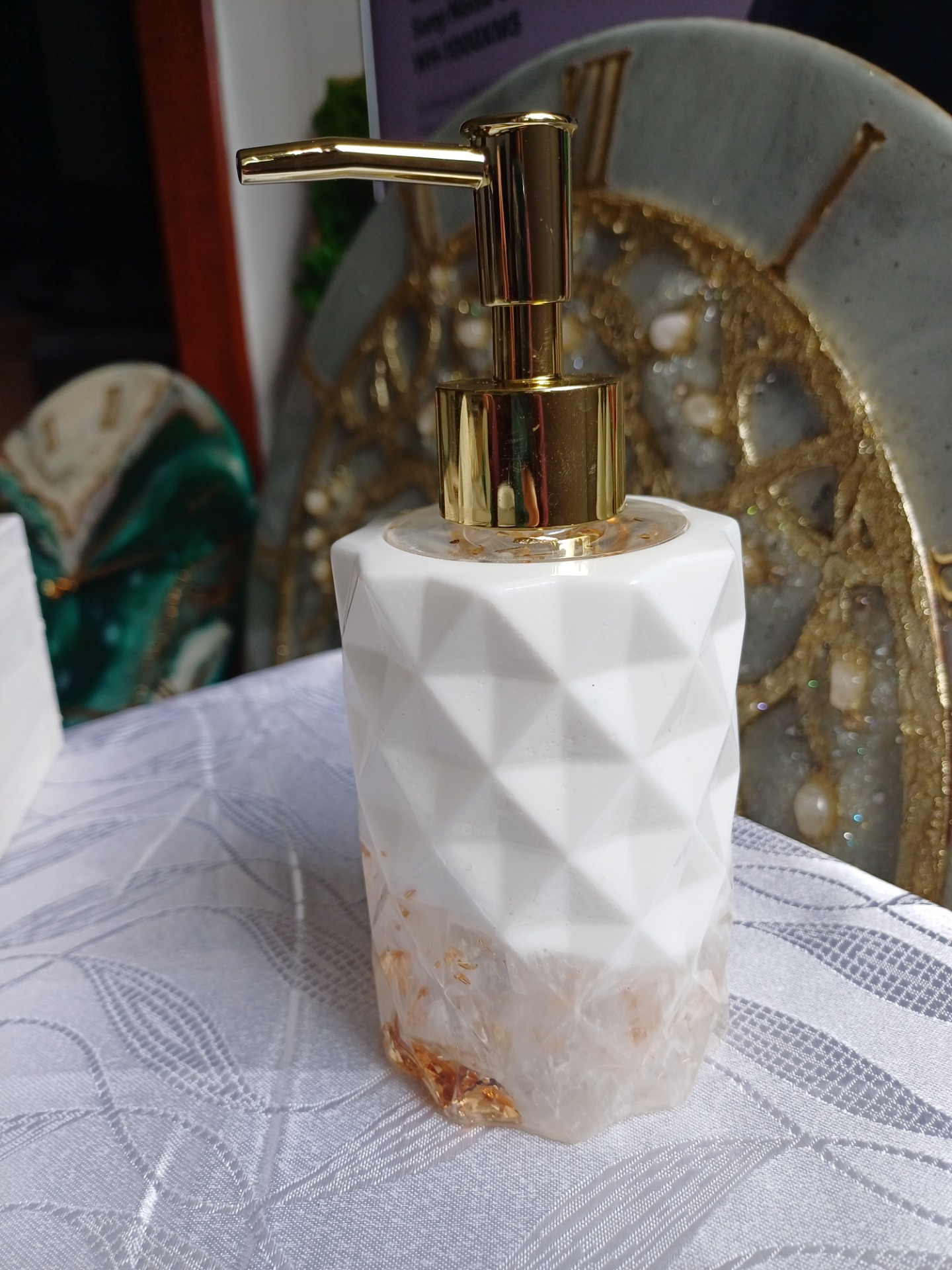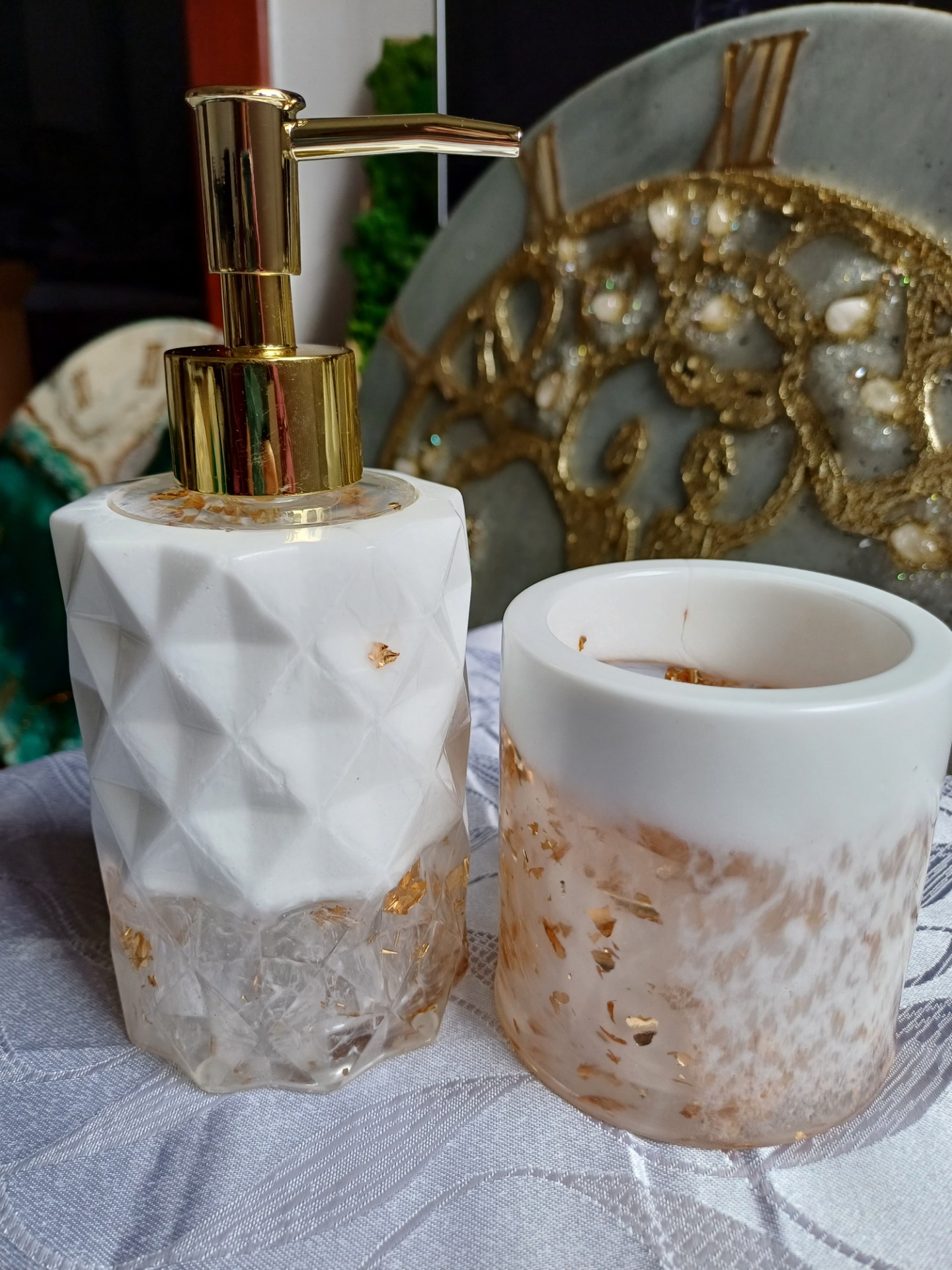 dávkovač mydla a pohár sú z vysokokvalitnej epoxidovej živice