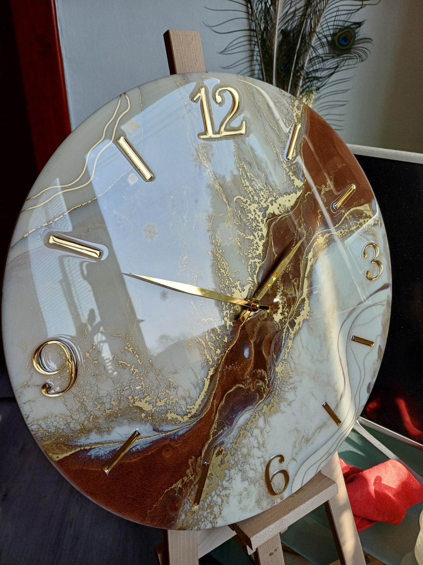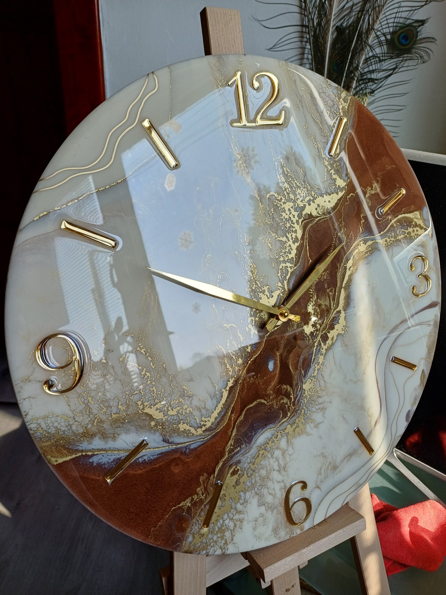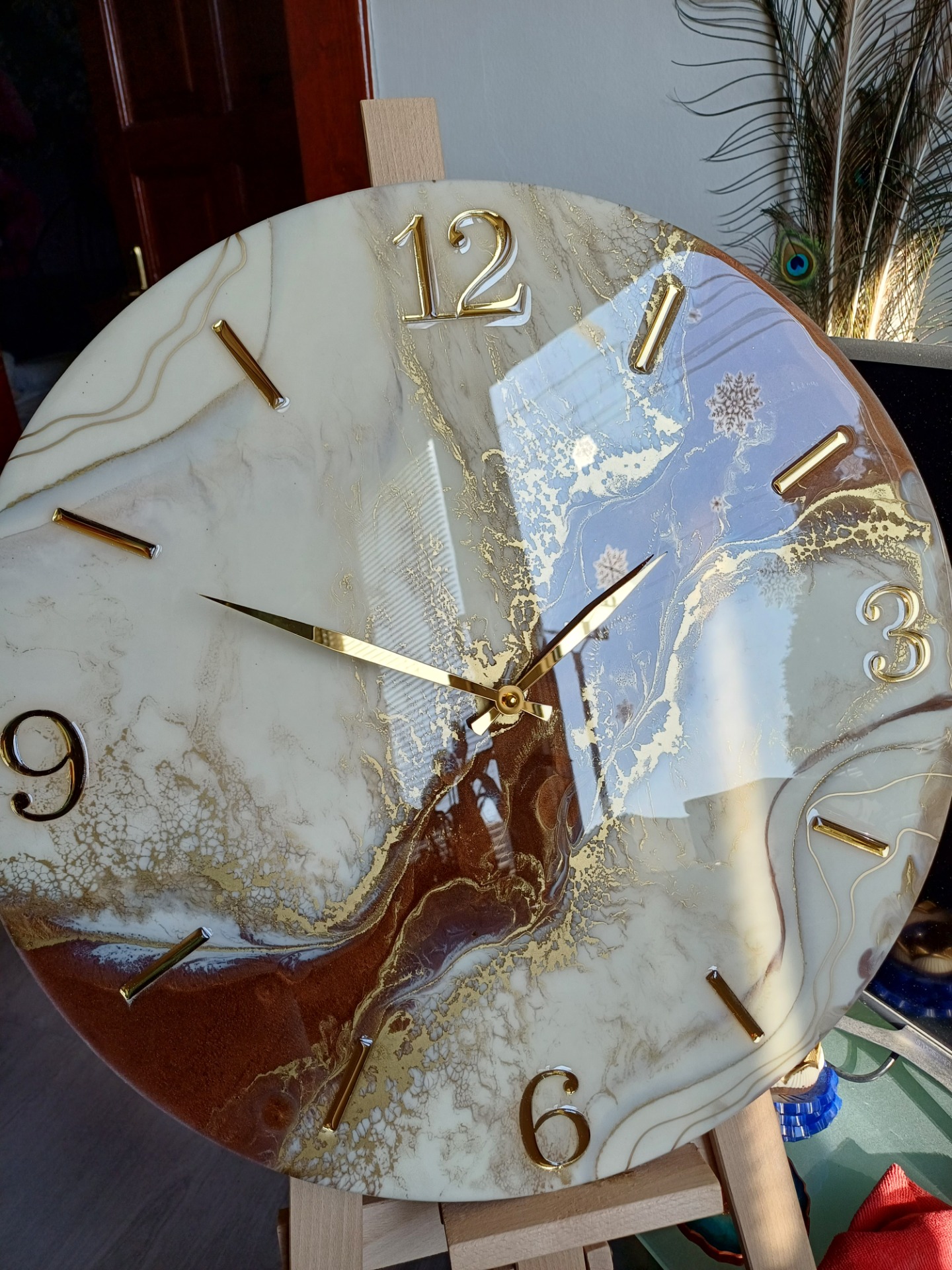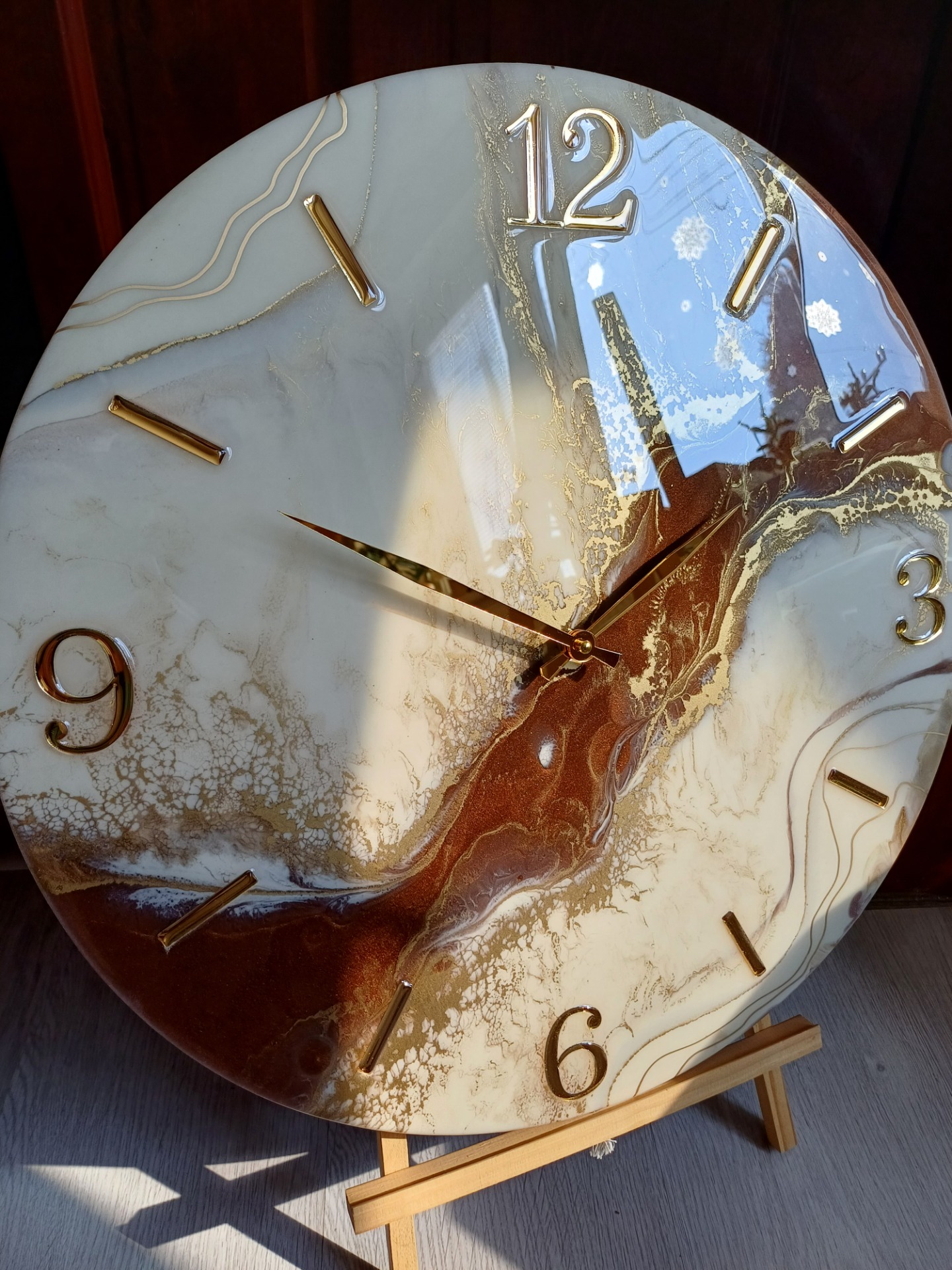 hodiny bielo hnedo zlatépriemer 40cm
