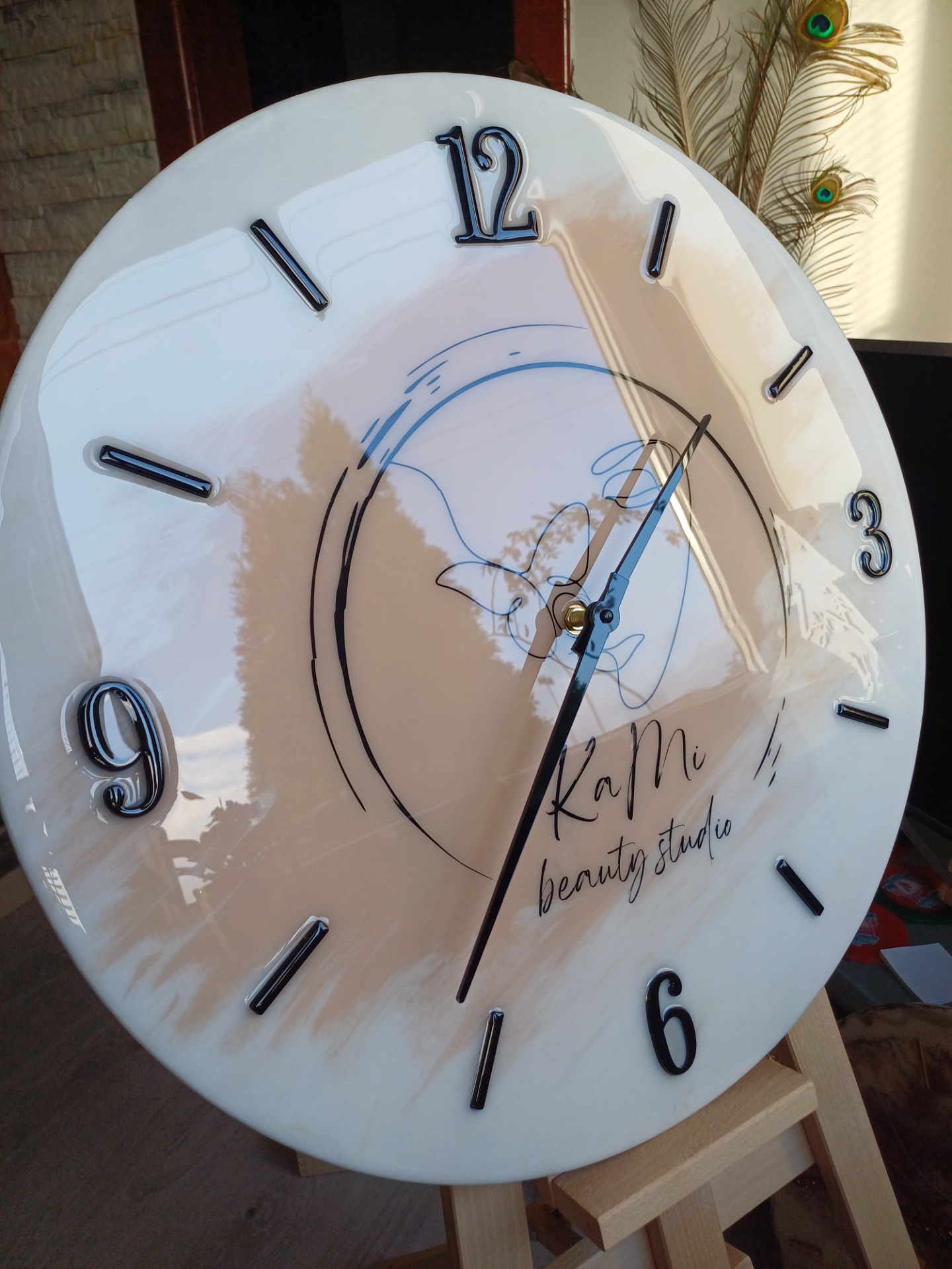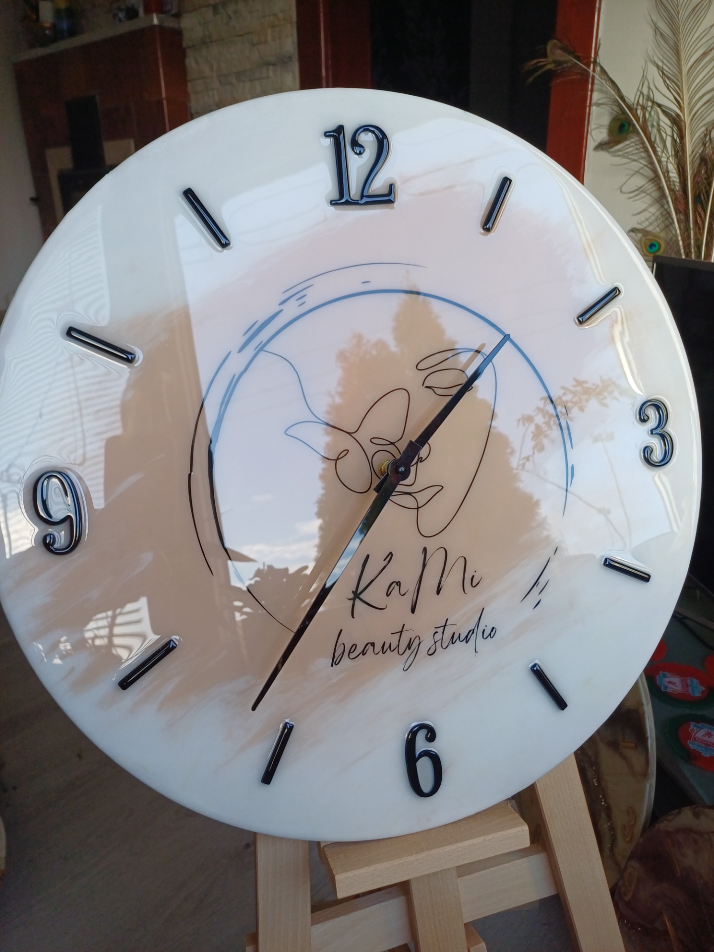 hodiny na mieru s logom Beauty štúdiapriemer 50cm