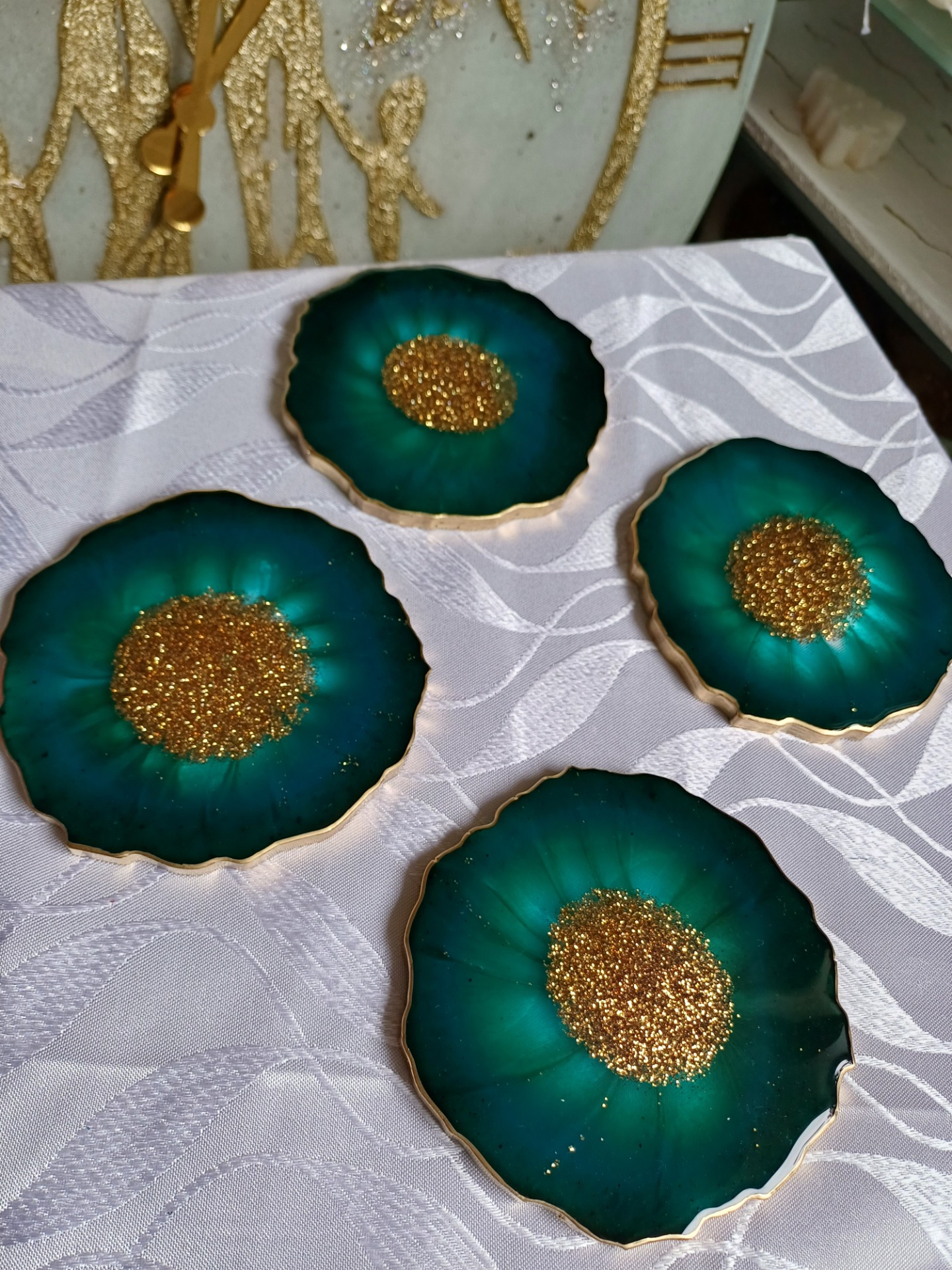 krásne smaragdové podšálkyfarebnosť vám vyrobím aj na prianiecena je za 1ks